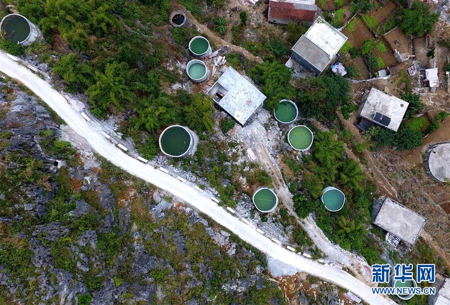 广西大化瑶族自治县七百弄乡弄雄村的家庭水柜分布在房前屋后(10月26日摄)。