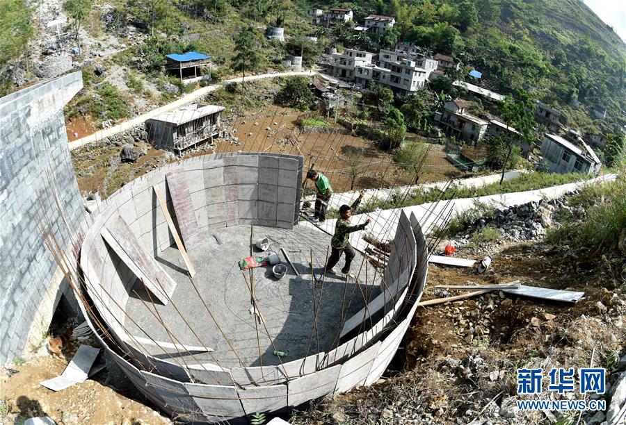 广西大化瑶族自治县七百弄乡弄雄村的家庭水柜分布在房前屋后(10月29日摄)。新华社记者黄孝邦摄