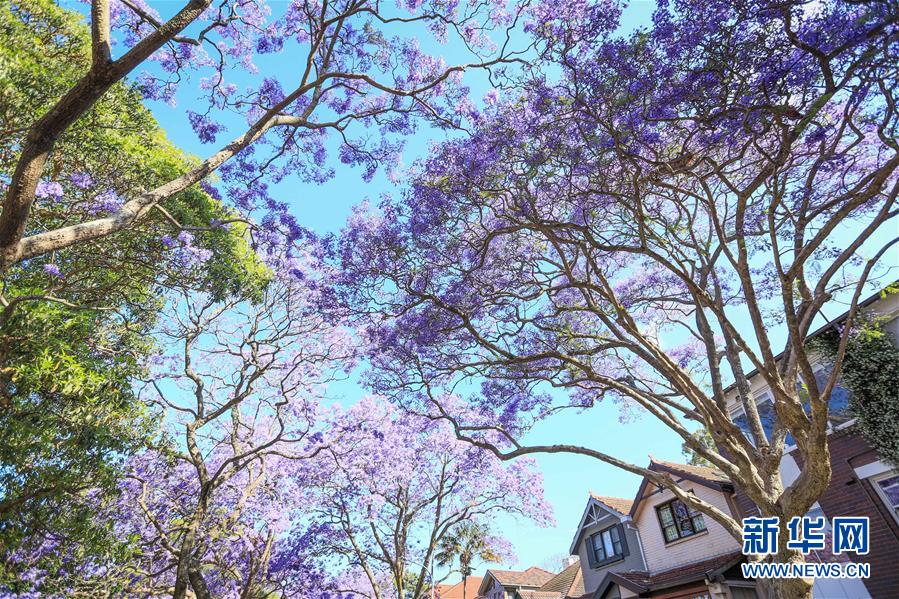 这是11月10日在澳大利亚悉尼拍摄的盛开的蓝花楹。
