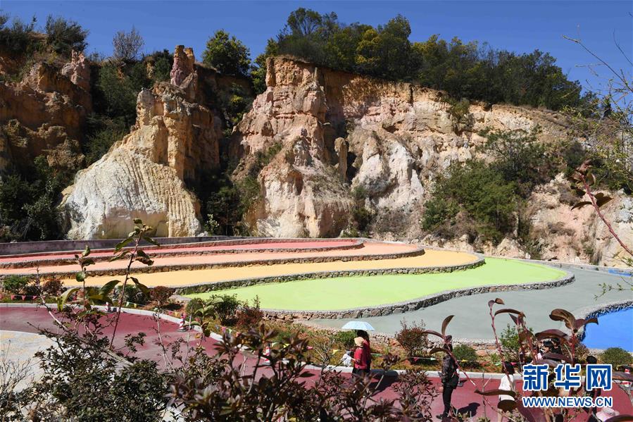 3月9日,游人在云南省曲靖市陆良彩色沙林风景区观景。 初春时节,云南省曲靖市陆良县彩色沙林的鲜花陆续开放。该沙林分布在峡谷中,总面积180公顷,因风化剥蚀而成,随着季节、气候、日照及观赏角度的不同,呈现不同颜色。 新华社记者杨宗友摄