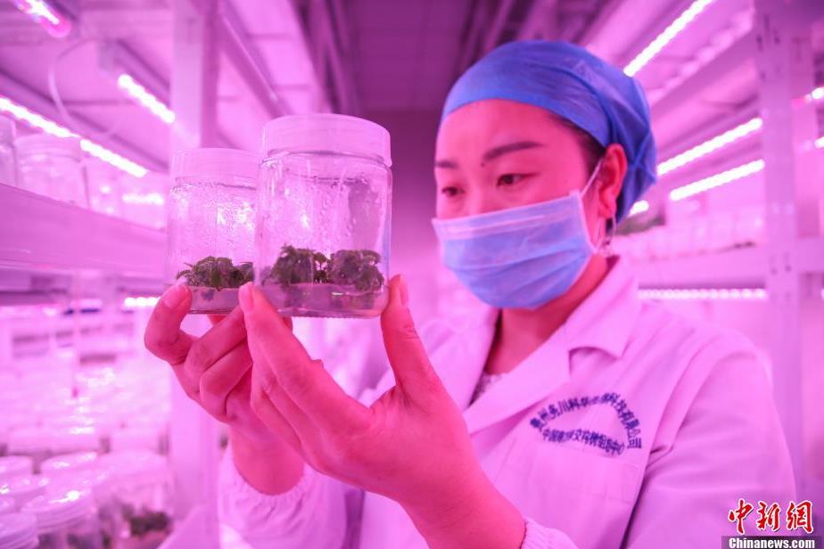 管理员在检查构树组织培育苗生长情况。 瞿宏伦 摄