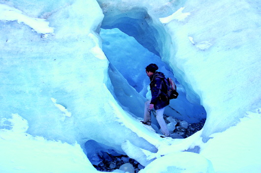 冰的形状各异,有塔林、峭壁、洞穴和隧道。冰川也孕育生命,附近能发现昆虫、孤狼、鹿群和雪莲花。甚至还有冰川表面长出了茂密的沙棘林,那是运动缓慢的冰川末端覆盖了较厚碎屑造成的。