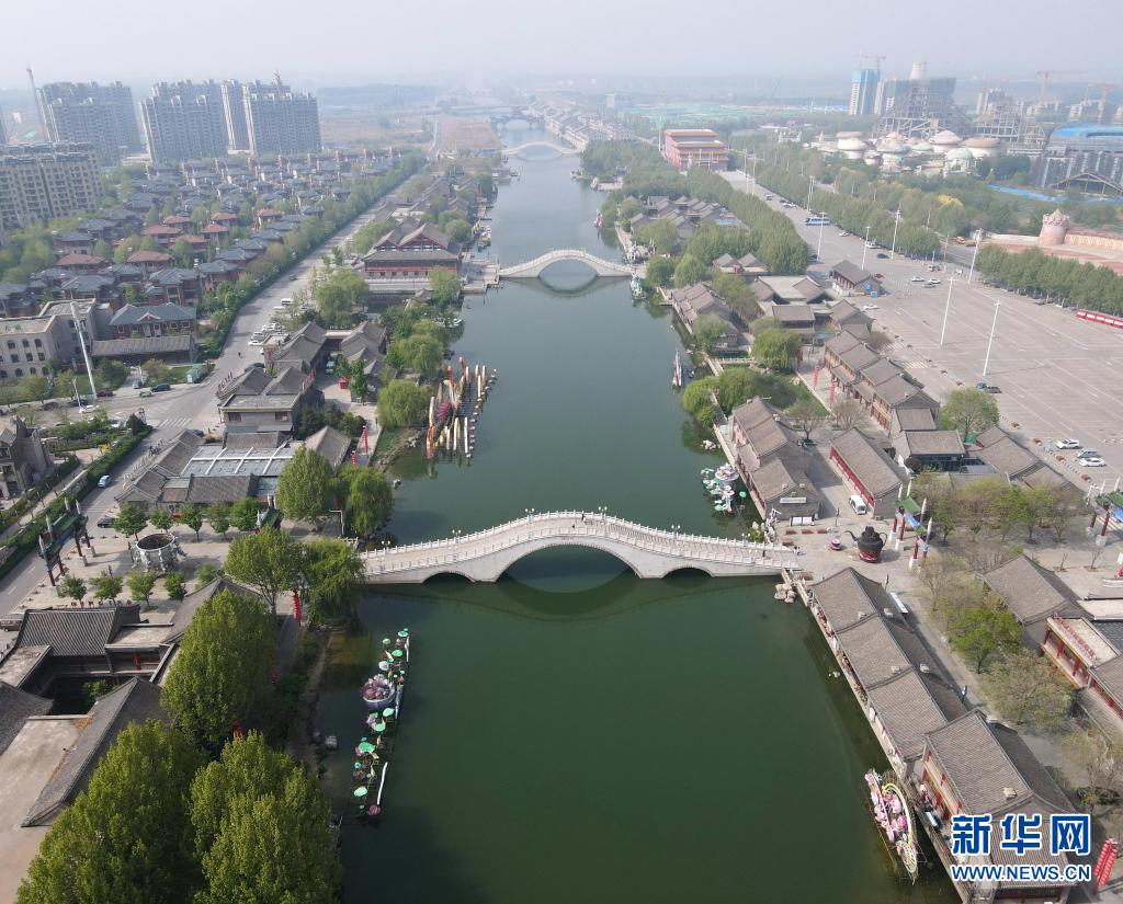这是4月27日拍摄的唐山市唐津运河生态旅游度假景区(无人机照片)。