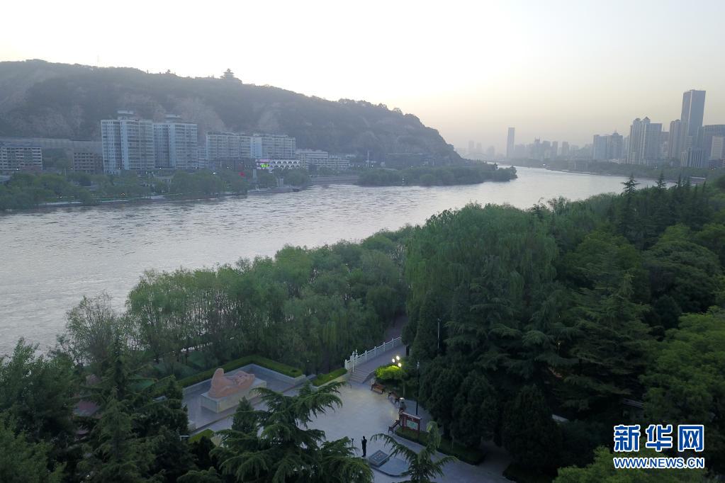这是5月8日在兰州市七里河区黄河之滨拍摄的黄河母亲雕塑(无人机照片)。