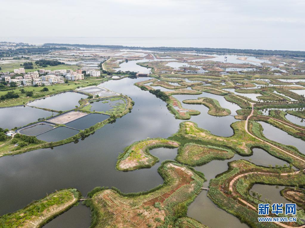 这是6月4日在海口江东新区拍摄的迈雅河区域生态修复项目(无人机照片)。