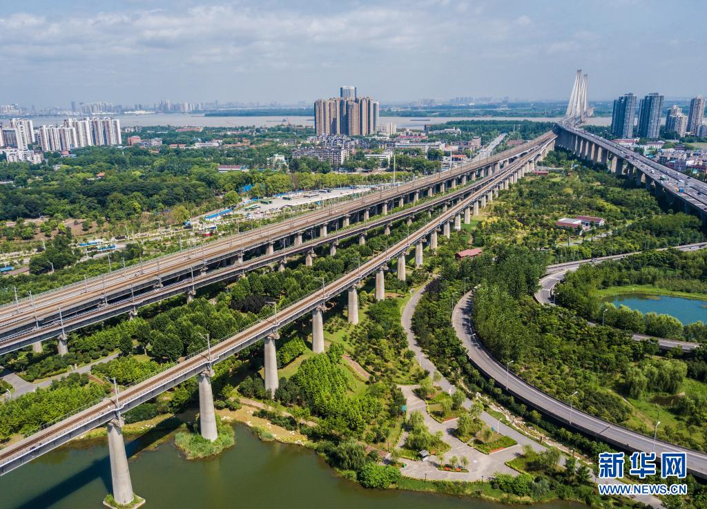 2017年7月11日拍摄的武汉市青山区戴家湖公园(无人机照片)。新华社记者 熊琦 摄