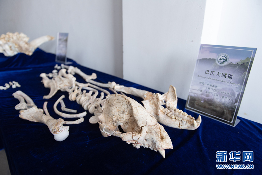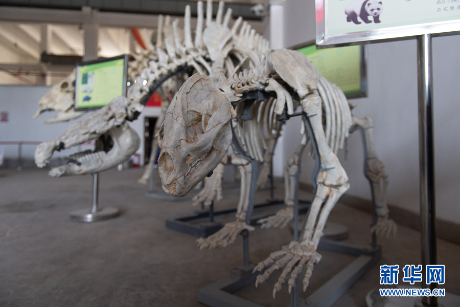 化石修复中心展示的巴氏大熊猫骨架化石。新华网 耿骏宇 摄