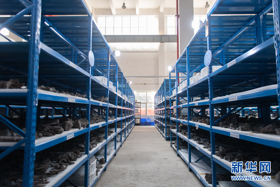 图为修复中心内的化石仓库,这里存放了上万件化石标本。新华网 耿骏宇 摄
