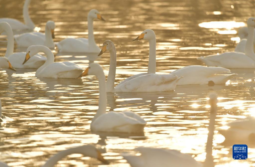 辽宁北票迎来越冬白天鹅