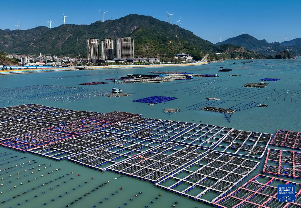 这是福建省连江县黄岐半岛海域海投国家级海洋牧场一角(12月6日摄,无人机照片)。