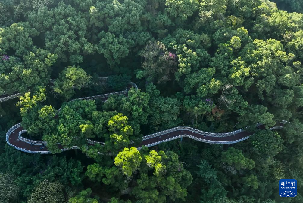 这是福州金鸡山公园的茉莉花生态廊道(12月7日摄,无人机照片)。
