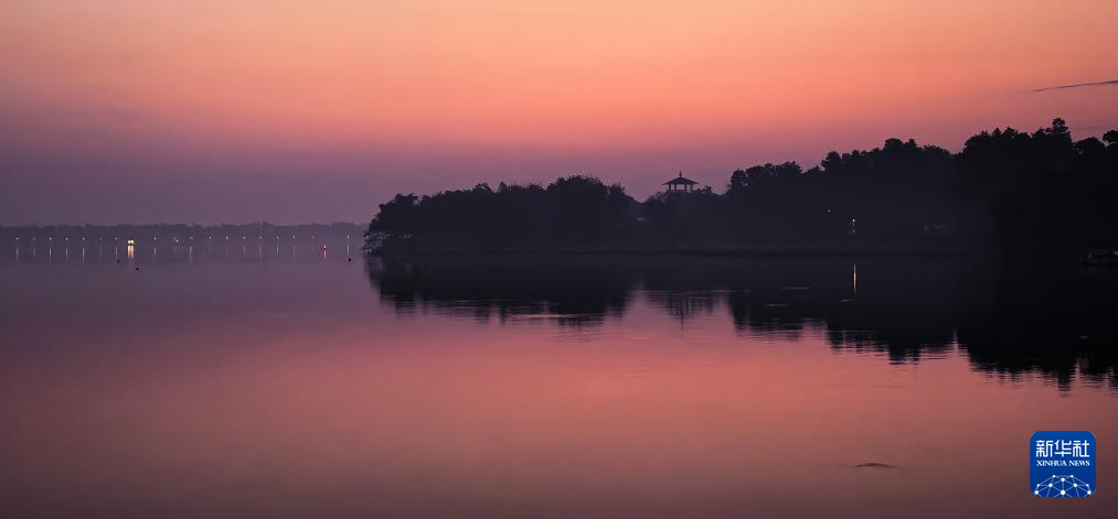 11月16日在武汉市东湖风景区拍摄的朝霞。