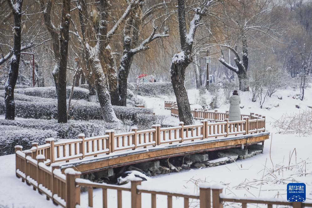 12月23日,受冷空气影响,吉林省长春市迎来中到大雪。