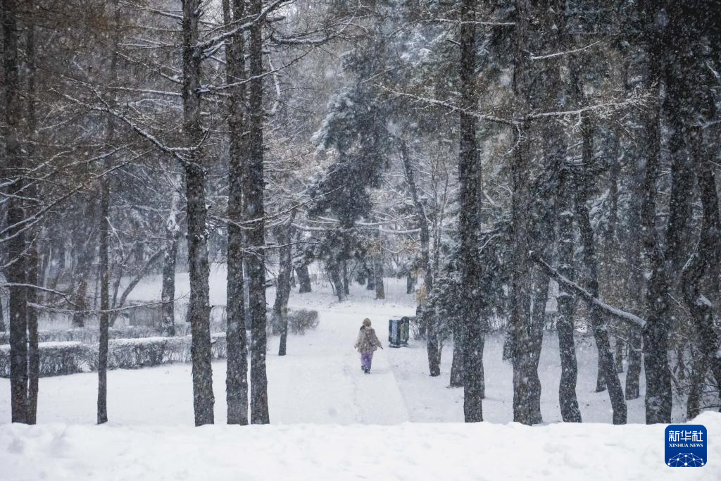 12月23日,受冷空气影响,吉林省长春市迎来中到大雪。
