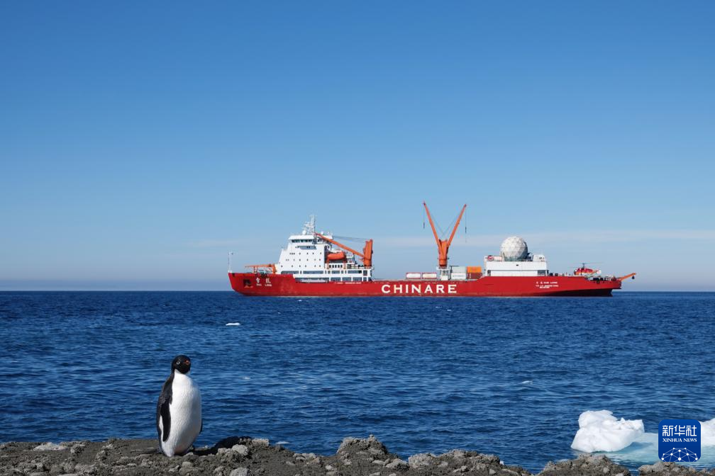 12月29日在秦岭站海域拍摄的“雪龙”号极地科考破冰船。