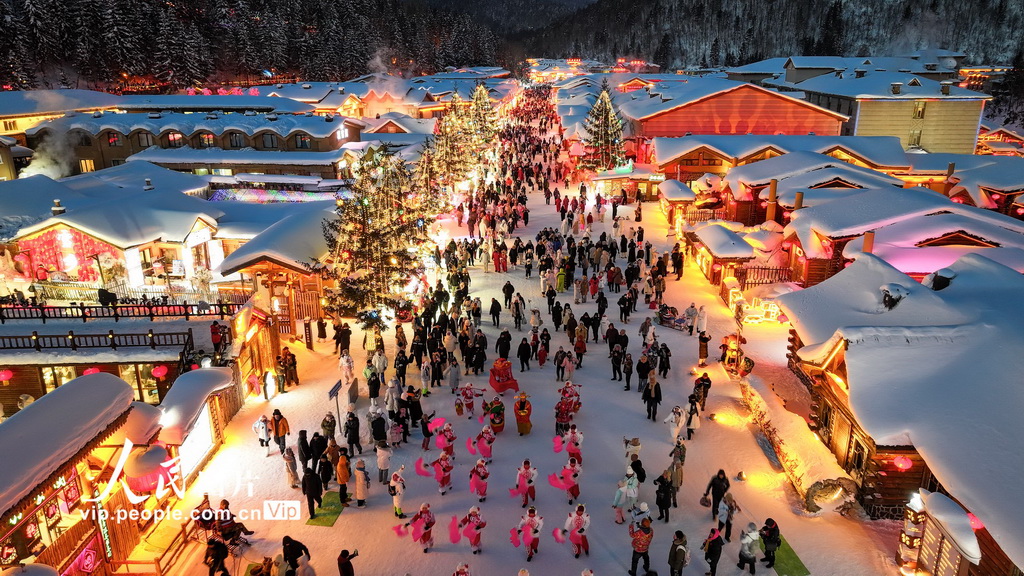 2026年1月17日,黑龙江省海林市,“中国雪乡”景区白雪皑皑,屋檐下冰凌垂挂,红灯笼点缀其间,如梦如幻,宛如童话世界。何华文摄(人民图片网)