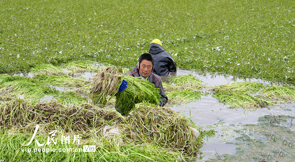 江苏海安:采收水芹菜