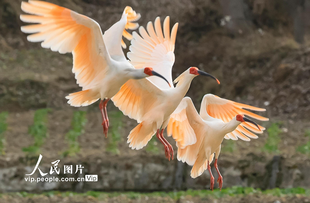 朱鹮是国家一级保护动物,此次在云台镇发现的朱鹮种群由7只个体组成,这是首次在康县境内发现朱鹮。冉创昌摄(人民图片网)
