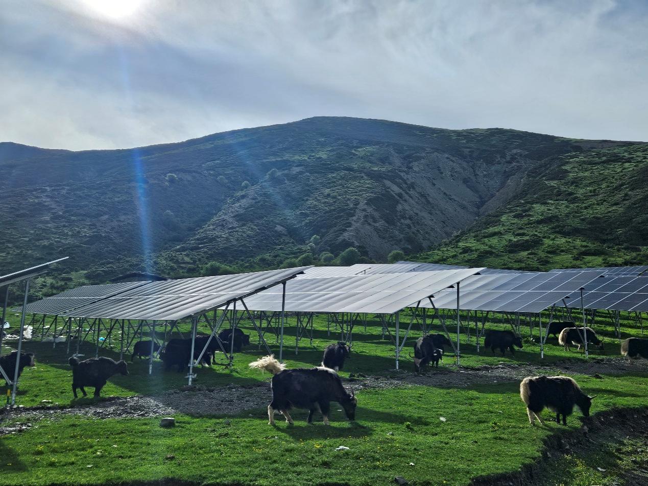 张海龙表示,凉山木里茶布朗光伏发电项目光伏场区设计施工总承包Ⅱ标段采用的是“牧光”互补建设模式,在光伏板下的空间可以进行放牧活动,形成“板上发电、板下牧养”的立体结构。不仅可以改善牧民群众生产生活条件,还能提高了科学养畜水平,逐步引导牧民群众从传统的靠天养畜的生产方式转变到自觉保护和经营草原,走草地畜牧业可持续健康发展之路。