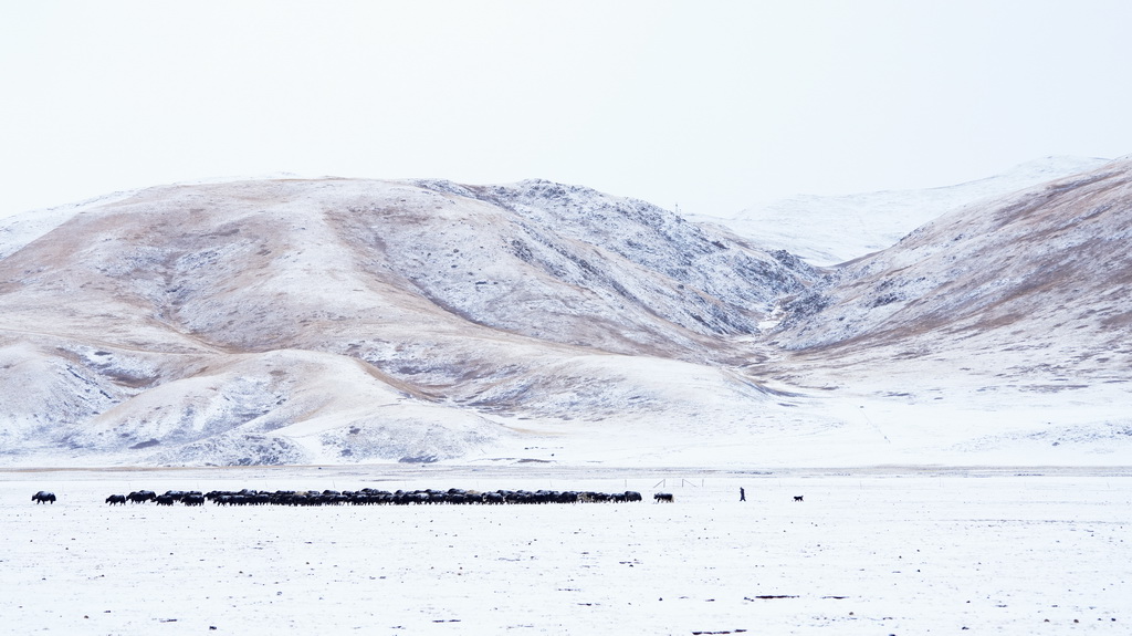1月29日,牧民在青海省玉树藏族自治州杂多县境内的草原上放牧。