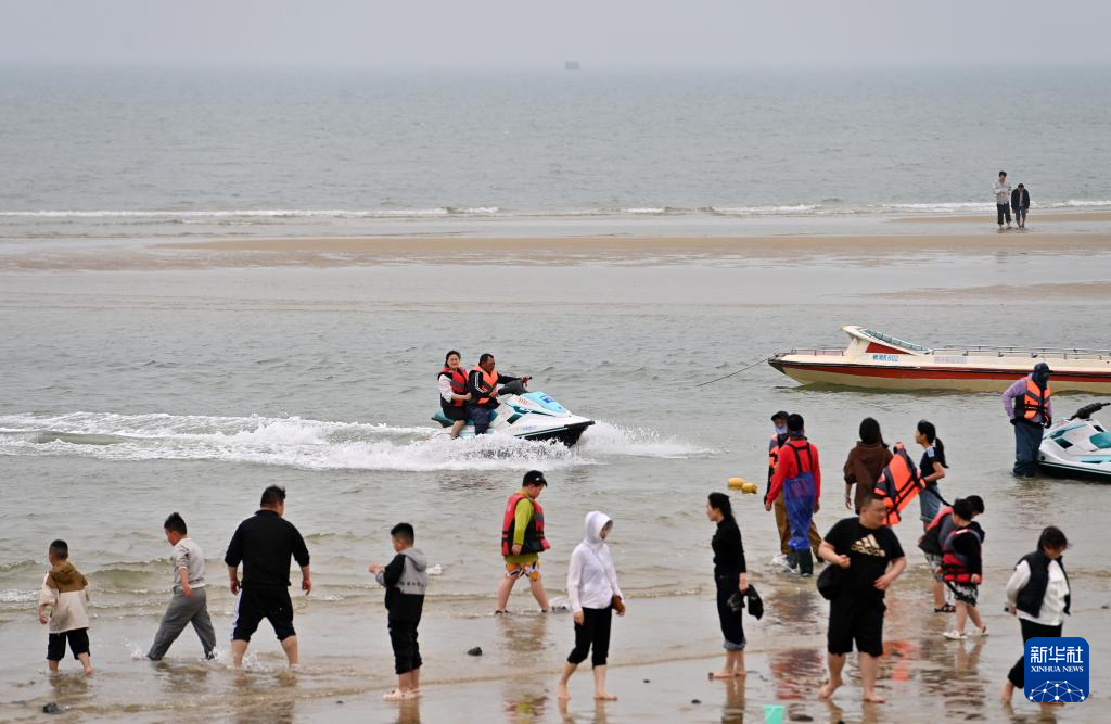 立春时节,广西北海市气温逐渐回暖,不少游客乘坐摩托艇等工具在海上冲浪游玩。