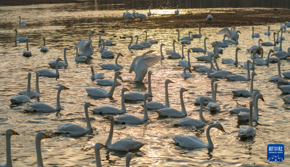 冬季以来,大批天鹅飞临辽宁省朝阳市大凌河栖息越冬,吸引人们前来观赏和拍照。