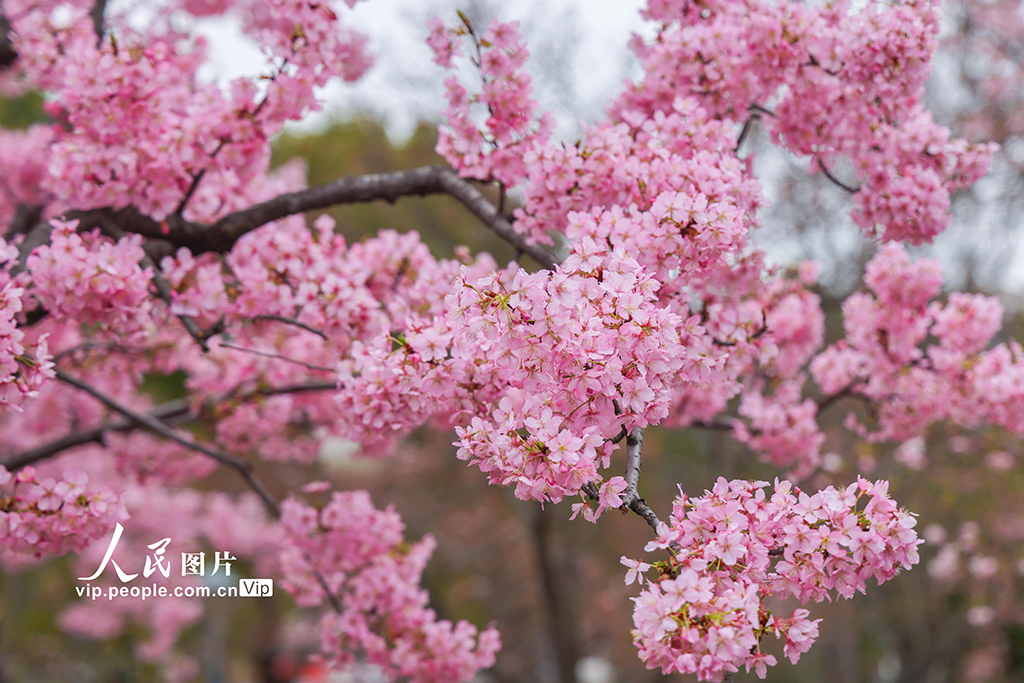 据了解,以“海上樱缘,繁花似锦”为主题的“2026上海樱花节”将于3月9日至4月9日在顾村公园举办。目前,该园樱花种植面积达1600余亩,品种约120种,均为上海之最。经多年精心打造,全园形成了点、线、面结合的立体樱花景观,移步易景,美不胜收。王初摄(人民图片网)