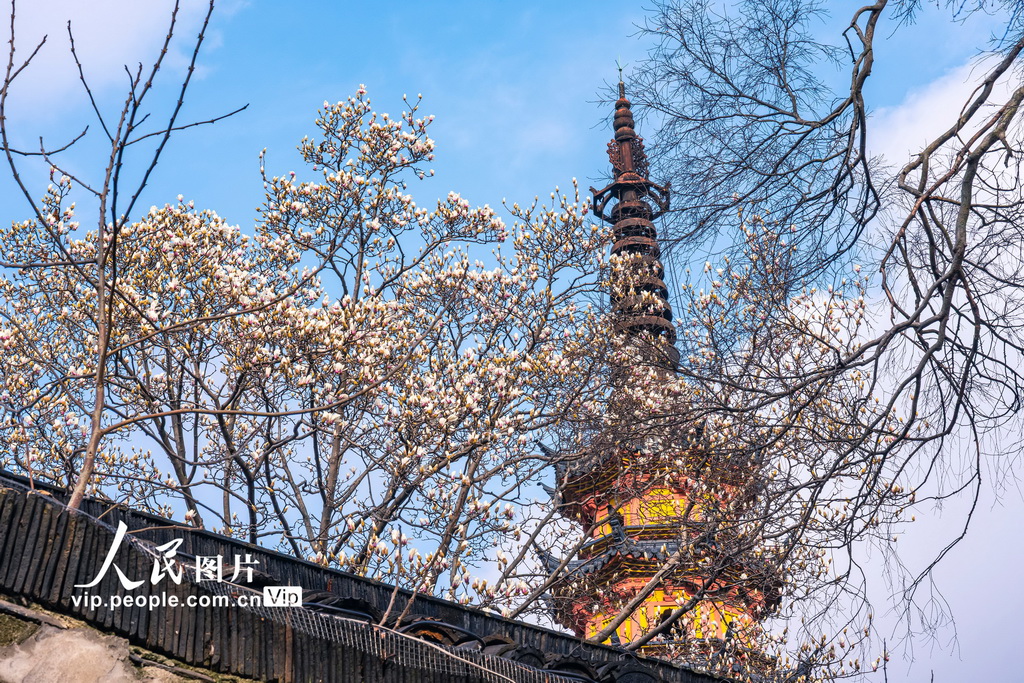 江苏苏州:玉兰花开映双塔