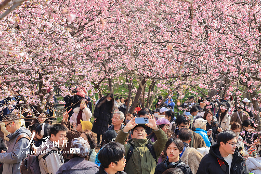 早春时节,江苏南京中山植物园内樱花绽放,吸引众多游客前来踏青赏花,乐享明媚春光。苏阳摄(人民图片网)