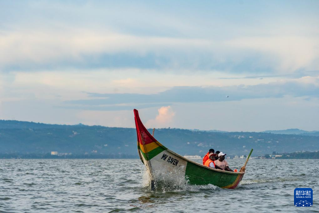 在肯尼亚基苏木,人们乘船在维多利亚湖上游玩(2026年2月27日摄)。