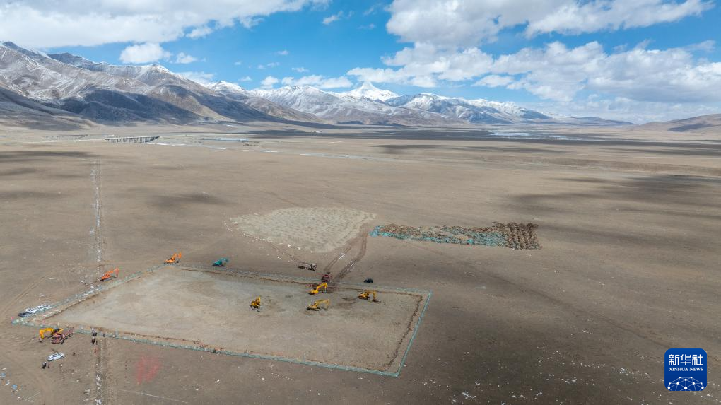 这是中广核西藏当雄乌玛塘50兆瓦光热电站破土动工现场(4月6日摄,无人机照片)。
