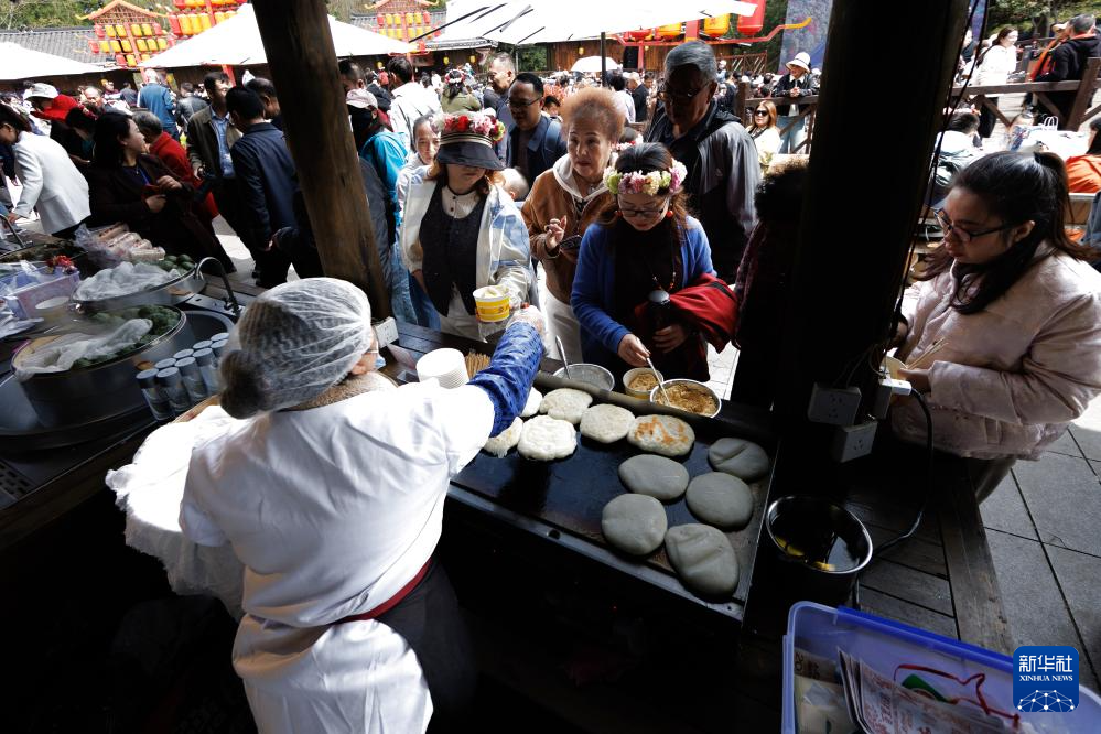4月1日,游客在百里杜鹃管理区普底景区体验当地美食。