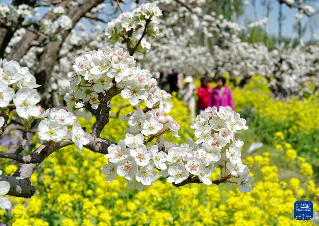 4月6日,游客在河北省晋州市周家庄乡第九生产队梨园赏花。