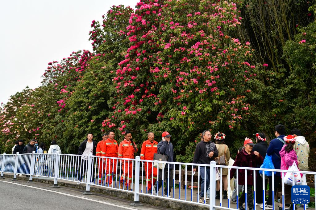 森林防火队员们在贵州百里杜鹃管理区金坡景区巡逻,排查森林火灾隐患(4月2日摄)。