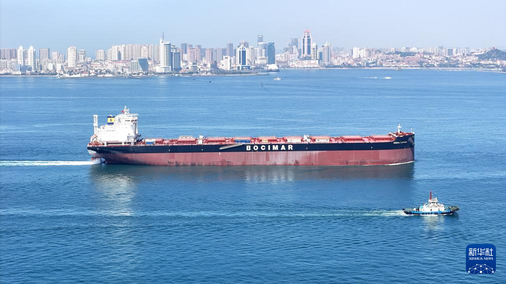 山东青岛:21万吨绿色燃料船舶启程海试