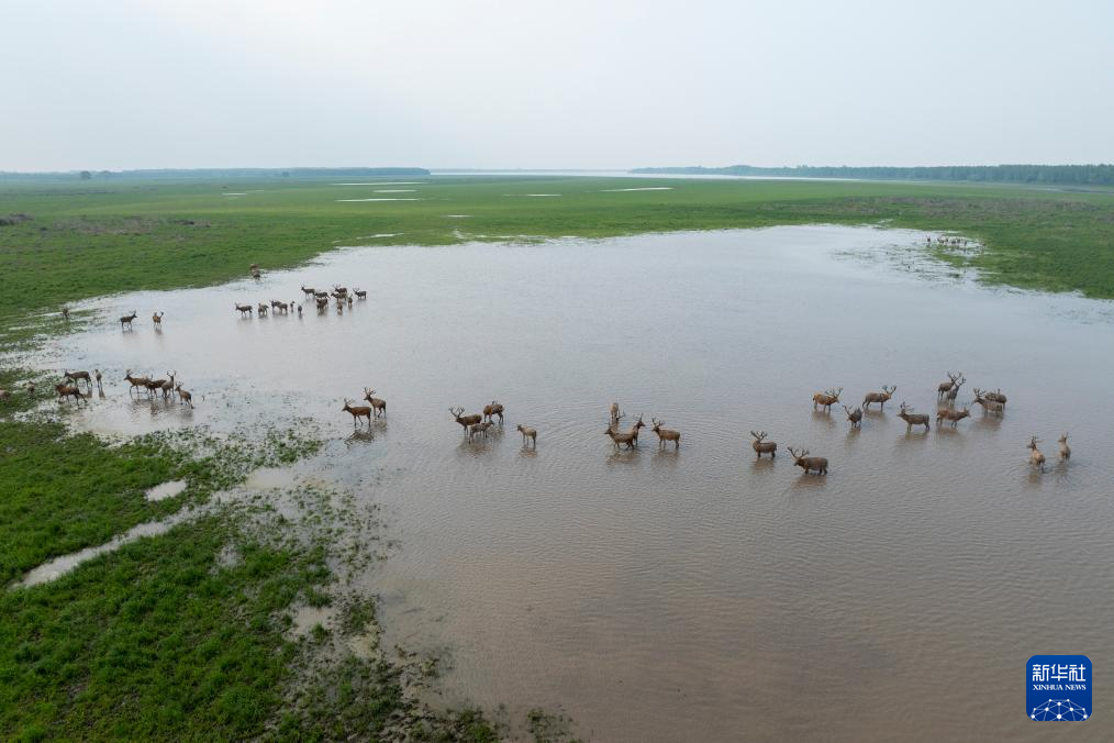 位于湖北天鹅洲长江故道边的石首麋鹿国家级自然保护区,是麋鹿繁衍生息的核心家园。在保护区工作人员多年不懈的守护下,当地湿地生态环境不断优化,石首麋鹿种群规模持续壮大。