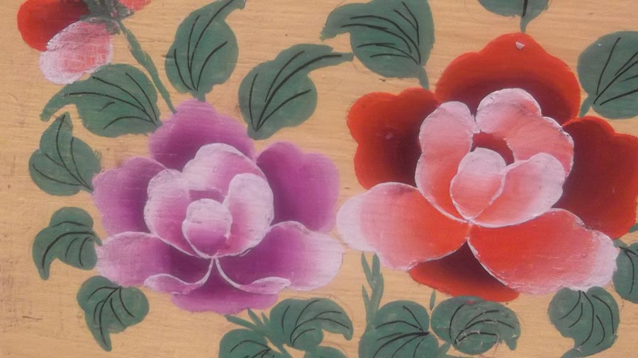 拍摄者:德庆玉珍 我外出时经过了一个客栈,摸到了这幅壁画。细细触摸其轮廓,我能感受到这是两朵花。随着我的触摸,心中仿佛有花盛开,虽然画在墙上的花没有香味但是对我来说却一样美丽。 A beautiful fresco “I passed a hostel when I went out and touched this fresco on their wall. I touched the outline very carefully and I could feel there were two flowers. By touching it, I could feel the flowers were also blooming in my heart. Although the flowers were on the wall, and they didn’t have any smell, they were as beautiful as real flowers to me.” [Photo by Deqen Yudron] |