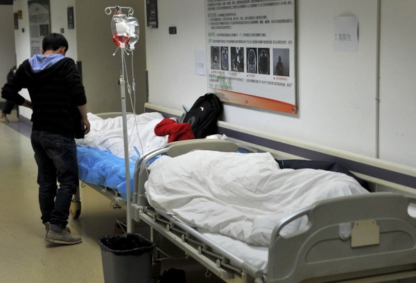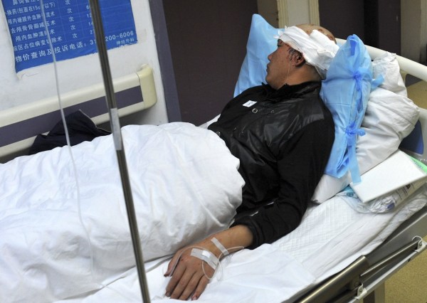 2014年3月2日凌晨,一名伤者在昆明市第一人民医院内输液。