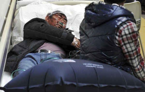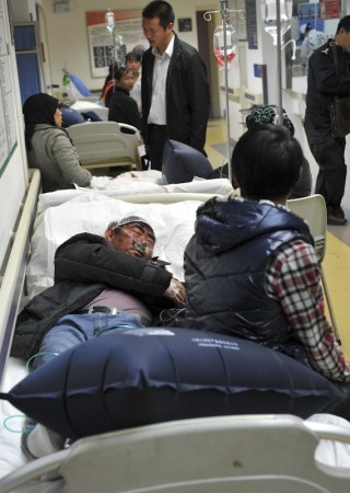 2014年3月2日凌晨,一名伤者在昆明市第一人民医院内输液。