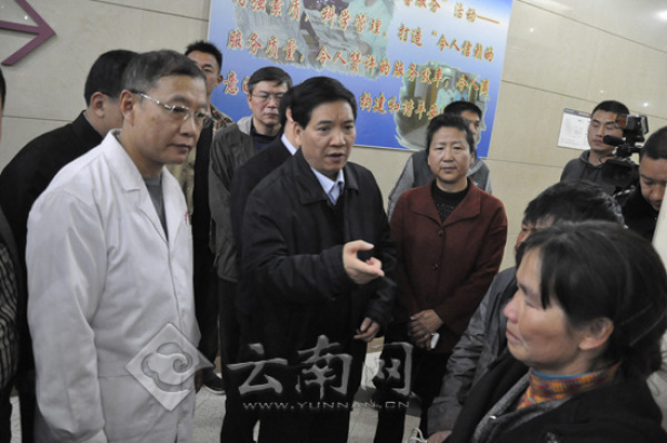 图为云南省省委书记秦光荣到昆明市第一医院探望伤员。云南网
