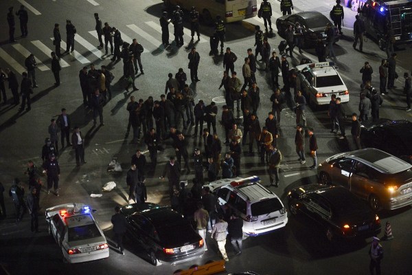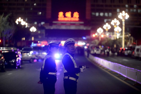 图为火车站遇袭事件之后,警方封锁现场。