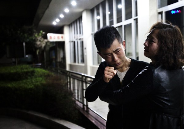 3月2日凌晨,云南第一人民医院,逝者家属相拥痛哭,本来一家三口前往哈尔滨,他母亲在昆明火车站的恐怖事件中失去了生命。
