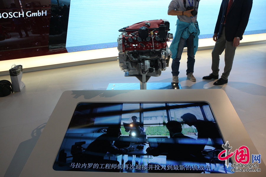 全新V8涡轮增压发动机将顶级性能、超强扭矩、法拉利传统的发动机声效与涡轮增压的燃油高效集于一身。 中国网记者 董宁摄影