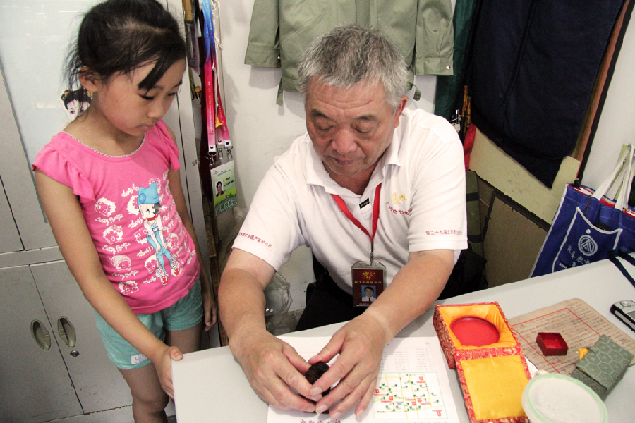 2014年8月25日,北京,来自孔子学院夏令营的国际留学生来到北京空竹博物馆参观,空竹博物馆馆长李连元为大家讲解空竹的构造、分类以及发展历史,并为大家现场表演。他娴熟的技艺得到洋学生的阵阵掌声,一些留学生还在李馆长的指导下,在不到一个小时的时间里也抖得有模有样。中国网宋一安 摄