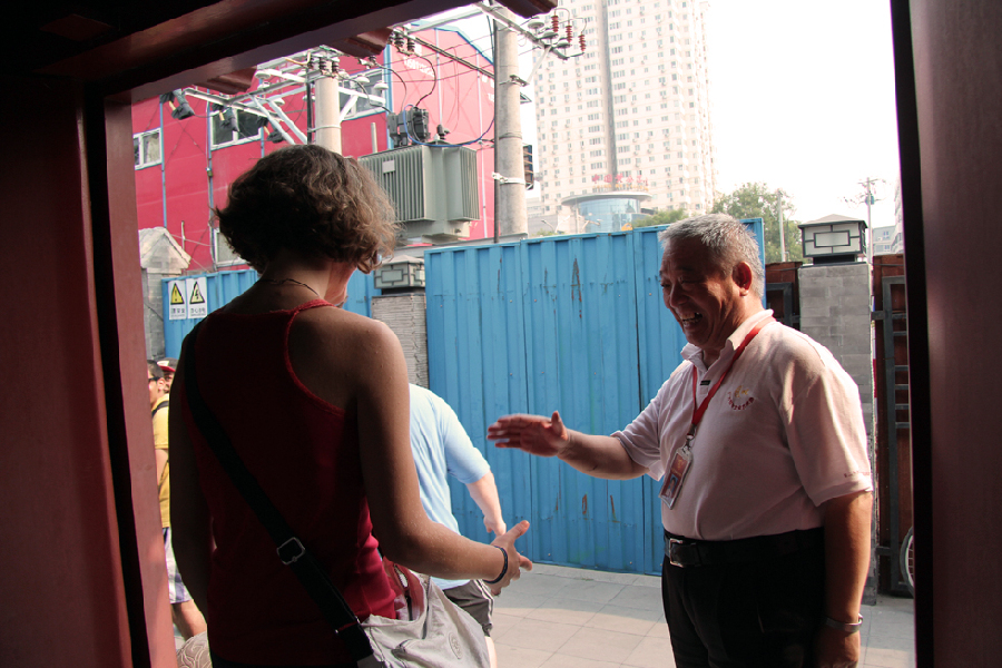 2014年8月25日,北京,来自孔子学院夏令营的国际留学生来到北京空竹博物馆参观,空竹博物馆馆长李连元为大家讲解空竹的构造、分类以及发展历史,并为大家现场表演。他娴熟的技艺得到洋学生的阵阵掌声,一些留学生还在李馆长的指导下,在不到一个小时的时间里也抖得有模有样。中国网宋一安 摄