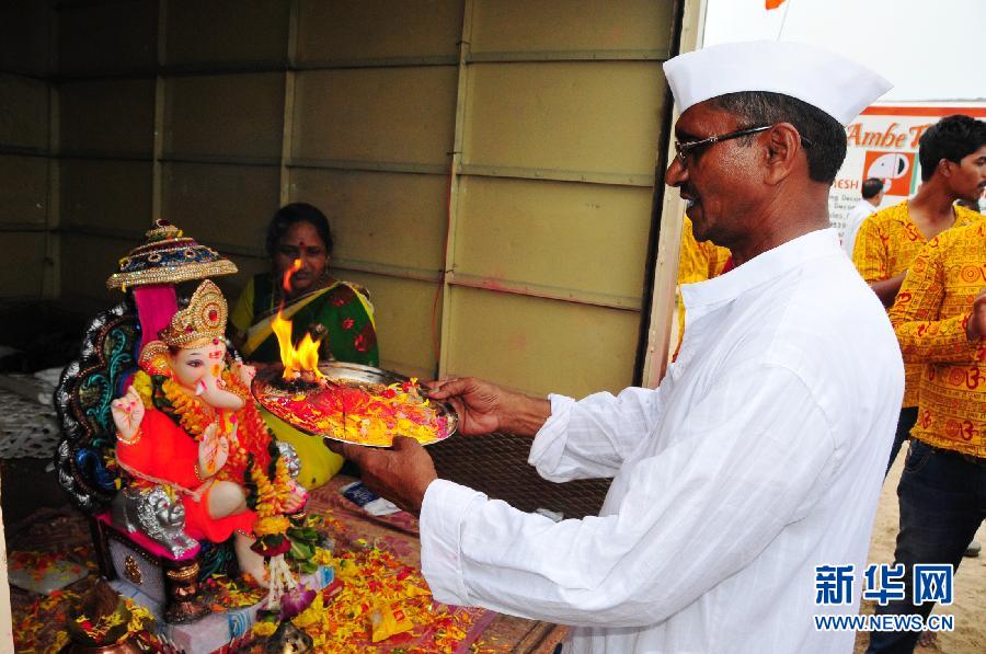 9月8日,在印度孟买的焦伯蒂海滩,人们在将象神的塑像沉入大海前做祈祷仪式。当日是印度传统宗教节日象神节的最后一天庆祝活动。象神加内什的形象是象头人身,有四只手,其中两只手持法器,大腹便便,憨态可掬,或坐着,或挠耳倾身。加内什在印度教里被视为财富、智慧、幸运的象征,印度人认为加内什很灵验,会给他们带来好运,由此被誉为印度的家庭守护神。新华社记者汪平摄