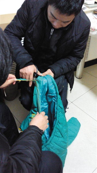 昨日京京的父亲剪掉孩子外套的拉链,按照习俗,孩子走的时候不能穿带拉链的衣服。