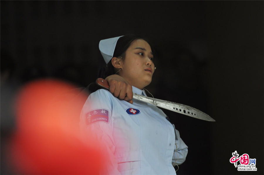 11月28日下午,四川巴中,当地举行反恐维稳消防应急处置演练。”暴徒“份子劫持了一名护士。CFP