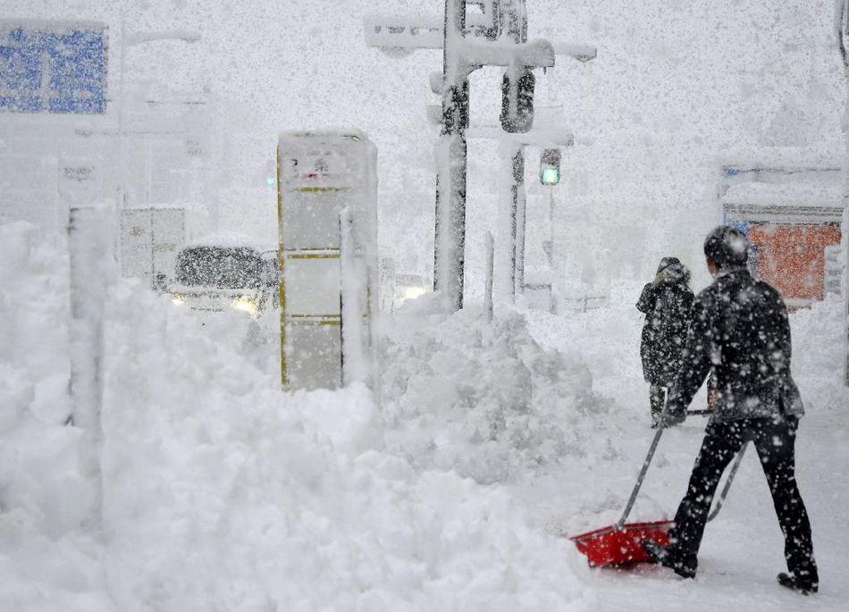 日本受低气压影响 多地遭强暴风雪袭击(组图)