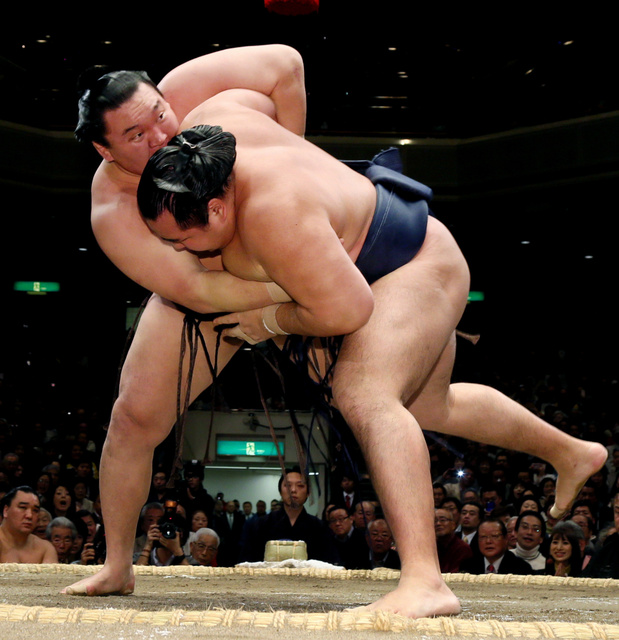 日本大相扑赛:横岗白鹏第33次夺冠 创纪录(组图)